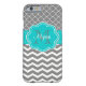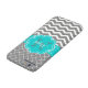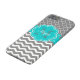 Show off your style in a fun way with this charcoal grey and blue chevron and quatrefoil personalised case.