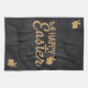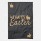 Modern dark grey glitter background and gold glitter text design and bunny and eggs