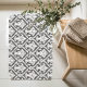 Dark Grey and White Baroque Damask Pattern Bath Mat