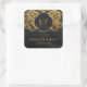 Dark Grey Gold Foil Lace Monogram Wedding Favour Square Sticker