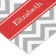 Dark Grey and White Large Chevron Zig Zag Pattern, Red Ribbon Name Monogram Label