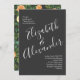 Dark Grey Peach Wedding Modern Floral Invitation