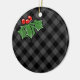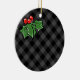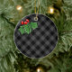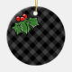 Dark Grey Plaid with Holly Sprigs Ceramic Ornament