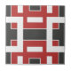 Modern ceramic tile design featuring geometric shapes in dark grey, red and white.