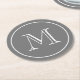 Dark Grey Solid Colour Custom Monogram Round Paper Coaster