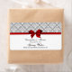 Dark Grey White Damask Water Label With Red Bow