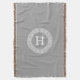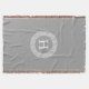 Dark Grey Wht Greek Key Rnd Frame Initial Monogram Throw Blanket