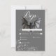 Step into the enchanting realm of our Halloween wedding response card with dinner options, where love meets glamourous mystery in a spellbinding celebration. Against a backdrop of bewitching charcoal grey, this design sets a dazzling yet dark tone for your special day. A charcoal bat with wings spread sits atop your wedding details, surrounded by a cluster of sparkling loose diamonds, adding glam to the dark beauty of the design. Capture the spirit of Halloween and set the stage for a wedding that's as hauntingly beautiful as it is unforgettable. Choose our Halloween wedding invitation suite to embark on a journey into the shadows and create memories that will last a lifetime. Created by Simply Farmhouse Press.