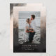 Modern wedding photo save the date design featuring contemporary typography on a dark black and ivory coloured watercolor ink background.