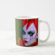 Image ceramic mug with gothic jester face, dramatic makeup, red and black fantasy clown design. Unleash a touch of mystery with the Dark Jester Mug. Featuring a striking gothic jester portrait with pale porcelain skin, bold red accents, and haunting black tears, this design blends fantasy, drama, and elegance in a single image. Perfect for fans of gothic art, fantasy aesthetics, or alternative fashion, this mug transforms your morning coffee or evening tea into an experience filled with intrigue. A bold gift idea for anyone who loves dark, theatrical, and artistic styles.