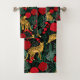 Dark Leopard Jungle with Roses Bath Towel Set