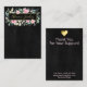These earring and jewellery display cards are dark with a lush flower and greenery border with a FAUX gold foil text frame on a chalkboard image as the background.