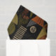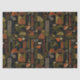 Sophisticated mid-century geometric pattern tissue paper featuring layered circles, arches, triangles, and rectangles in forest green, burnt orange, ochre, and cream on a black background. Rich textures and retro-modern shapes create a bold design ideal for Bauhaus lovers, vintage décor fans, and anyone drawn to moody modern style.