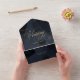 Dark midnight blue and gold modern painterly wedding invitation.