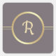 Dark Mocha | Gold Custom Monogram Wedding Square Sticker