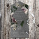 AVAILABLE WITH OR WITHOUT A QR CODE TO SCAN OR WITH OR WITHOUT DINNER OPTIONS. This all in one wedding invitation design features a floral arrangement of soft blush pink roses and white and black anome flowers with a dark grey and white distressed beige background. Classy, dark, and modern. Created by Simply Farmhouse Press.