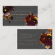 Dark Moody Autumn Floral Bouquet Business Cards. The dark grey background color can be changed to any color.