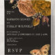 ALSO AVAILABLE WITH A QR CODE TO SCAN. Step into a realm of dark elegance with our hauntingly beautiful wedding invitations. Embrace the enchantment of the season with a spray of fall colour flowers cascading across a midnight black canvas, weaving a tale of mystery and romance. Rust, ivory, brown, gold, and terracotta hues dance amidst the shadows, creating a captivating contrast that whispers of hidden depths. A delicate moth, adorned in the same enchanting palette, graces the tear-away response card, inviting guests to become part of the spellbinding narrative. Turn over to find vintage writing on tan parchment, a nod to bygone eras, perfectly complemented by the inky backdrop. Each detail crafted with care, each element conspiring to set the stage for an unforgettable celebration. Dare to delve into the darkness and discover the allure of our dark and moody wedding invitations. Created by Simply Farmhouse Press.