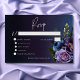 Introducing our exquisite wedding response card with dinner choices that effortlessly marries modern elegance with vintage allure. Set against a moody navy blue background, a soft side loose bouquet comes to life, featuring dark purple, lavender, periwinkle blue, and cream white flowers alongside dark purple berries and delicate botanical greenery. The blend of colours symbolises the richness of your journey together, while the vintage feel adds a touch of nostalgia to the contemporary design. Set the stage for a wedding that harmoniously combines the best of both worlds – a celebration that is delicate and modern yet holds the timeless beauty of the past. Created by Simply Farmhouse Press. For custom pieces or to request a product not in our store, please email simplyfarmhousepress@gmail.com.