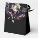 Dark moody boho elegant gothic wedding favour box, black purple peonies on dark background wedding favours personalised favour box