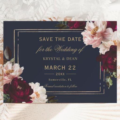 Personalise this elegant wedding slim menu card easily and quickly. Simply click the Edit Using Design Tools button to edit the text, change fonts and fonts colours. Featuring beautiful realistic burgundy, blush peony flowers against a dark navy blue background. Matching items available in store. (c) Somerset Fine Paperie
