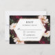 Dark Moody Burgundy Blush Peonies Floral Wedding RSVP Card