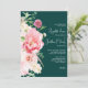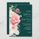 Dark Moody Emerald Blush Floral Stylish Script Invitation