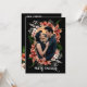 Announce your engagement with a striking, artfully crafted card that perfectly captures your love story. The front showcases your photo framed by dramatic florals in lush, deep tones against a dark, moody backdrop, blending elegance with an edge. The reverse invites your friends and family into your journey with a space to share your engagement story. This design is ideal for couples who want an announcement that feels as captivating and unforgettable as their own romance.