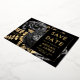 This elegant, moody wedding Save the Date card features a lush, romantic floral bouquet in black with gold faux foil and glitter foliage on a black background. Customise the real gold foil text in stylish fonts on a gold-bordered black rectangle, and add your wedding website URL to the solid black back.