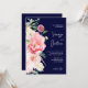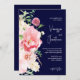 Dark Moody Navy Blue Blush Pink Floral Script Invitation