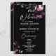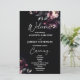 Dark moody noir elegant gothic wedding program, black burgundy peonies on dark background wedding day stationery order of service
