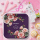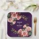 Dark moody pink and red roses purple wedding paper plate
