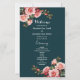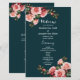 Dark moody pink red roses teal wedding program