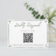 A simple and elegant calligraphy wedding scannable RSVP card. That is dark moss green and white with hand drawn frame and customizable QR code in the middle . Minimalist and chic with green typography .