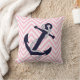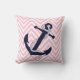 Dark Nautical Blue Anchor Pink Zigzag Chevron Cushion