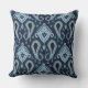 Dark Navy Blue Black Ikat Tribal Art Pattern Cushion