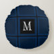 Dark Navy Blue Custom Single Initial Striped Round Cushion