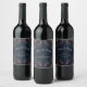 Dark Navy Blue Floral Elegant Wedding Wine Label