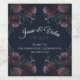 Elegant dark navy blue floral with maroon and mauve flowers wedding design is lovely with maroon and pink roses and greenery on a dark navy blue background for a gothic wedding look. The flowers adorn the corners for an elegant, modern and sophisticated look.