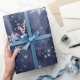 Dark Navy Blue Night Sky Fresh Fallen Snowflakes Wrapping Paper