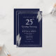 Dark Navy Blue Silver Leaf Wedding Anniversary Invitation