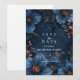An enchanting deep-navy wedding design wrapped in glowing copper florals and delicate botanical detailing. This immersive, moody palette creates a romantic twilight atmosphere, perfect for elegant evening weddings or couples who love rich, dramatic aesthetics. The ornate frame draws the eye to your names and details, giving the entire piece a luxurious, storybook feel. A sophisticated choice for modern romantics who want their celebration to feel timeless and striking.