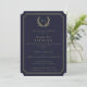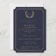 Dark Navy/Gold Monogram Laurel Wreath Graduation I Invitation