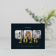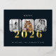 Dark Navy Happy New Year 2026 Photo Gold Foil Holiday Postcard