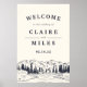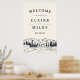 Welcome guests to your rustic, woodland or mountain wedding with our Mountain Sketch poster, featuring a sketched illustration of mountain peaks, pine trees, and a flowing river. Add your names, wedding date and custom welcome text using the fields provided.