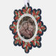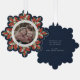 An elegant dark navy blue snowflake-shaped Christmas/Holiday paper ornament card with a ribbon to hang it up. Hand painted watercolor red berries and winter greenery form a border around your photo. All text is fully editable so you can easily change the message/style/color/size. The back has template text for a longer printed message - delete before ordering if not wanted. The backer can also be swapped out for a photo if you prefer. Other colors and coordinating items available.