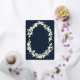 A dark navy reception only wedding invitation, featuring hand painted snowberries and stems of eucalyptus arranged into a beautiful botanical frame. The text and scattered dots on the front of the card are foil pressed. All text is fully editable. Please view this Collection in my store for invitations with alternative wording options, different colours and for coordinating items.
