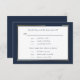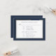 This navy script on white with a gold and navy border is an elegant rsvp card and menu selection card. The back has a navy blue background with your names and a gold ampersand. Can be used for weddings, vow renewals or anniversaries