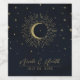 Dark Night Gold Celestial Sunburst Moon Wedding Wine Label