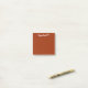 Dark orange/brown pad of Post-It Notes with a customisable white text template.